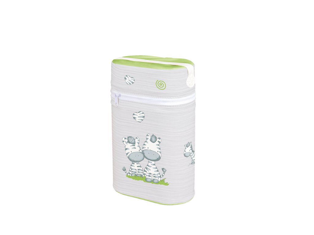 Baby Bruin termoobal na 2 fľašky je perfektný spôsob, ako udržať potraviny a nápoje teplé alebo studené, pri dlhších prechádzkach alebo výletoch. V závislosti od počiatočnej teploty potravín/tekutín a atmosférických podmienkach, termoobal udrží teplotu potravy až 3 hodiny. (Výrobok nenahrádza termosku). Vyhovuje väčšine typov úzkych dojčenských fliaš. Materiál neobsahujúce PVC, vnútro je polystyrén.
