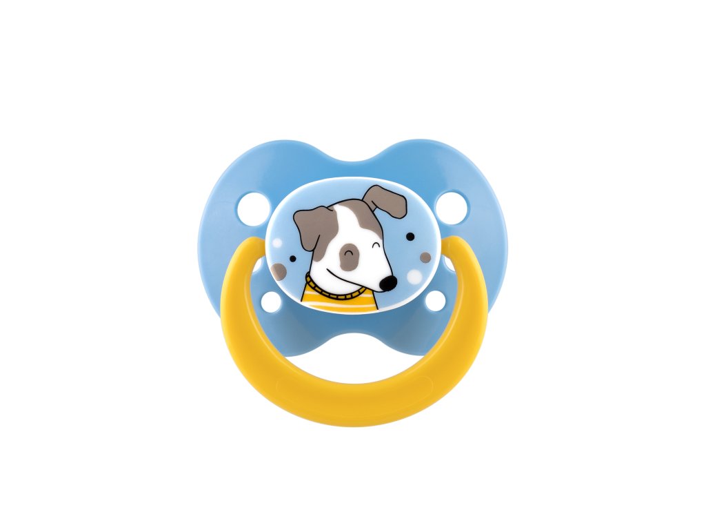 Utišujúci cumlík šetrný k čeľusti podporuje prirodzený vývoj mliečnych zubov vďaka anatomicky tvarovanému cumlíku.