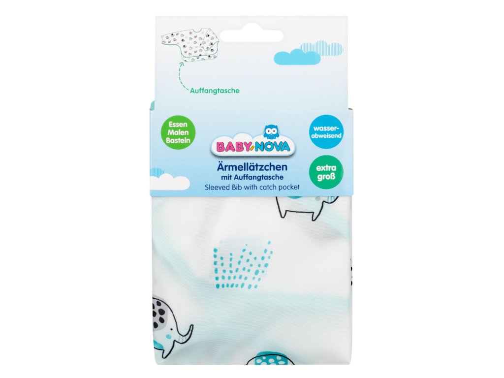 Najmä na začiatku fázy prikrmovania a učenia sa samostatne jesť je objavovanie jedla veľkou zábavou a zvedavosťou. Škvrny a rozliate tekutiny na oblečení vášho dieťaťa sú nevyhnutné. Preto odporúčame praktický rukávový podbradník od spoločnosti Baby Nova, pretože chráni rukávy aj celú hornú časť tela, a dokonca aj nohavice a stoličku vášho dieťaťa vďaka praktickému vrecku.