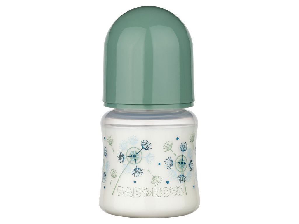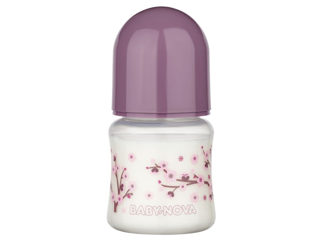 Dojčenská fľaša Baby Nova s potlačou čerešňového kvetu alebo púpavy s objemom 150 ml a širokým hrdlom.