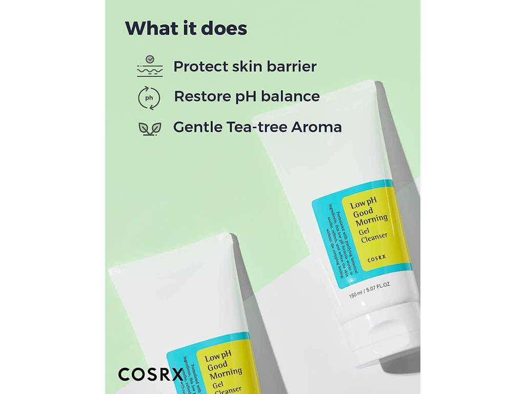 COSRX Low pH Good Morning Gel Cleanser je obľúbený kórejský čistiaci gél určený na každodenné použitie. Vďaka nízkemu pH (okolo 5,5) pomáha zachovať prirodzenú ochrannú bariéru pokožky a udržiava jej zdravú rovnováhu.