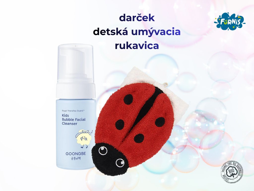 Objavte prémiovú kórejskú starostlivosť s GOONGBE Kids Čistiacou penou na tvár a ručne šitú umývaciu rukavicu zo 100 % BIO organickej bavlny značky Fürnis dostane vaše dieťa ako darček*