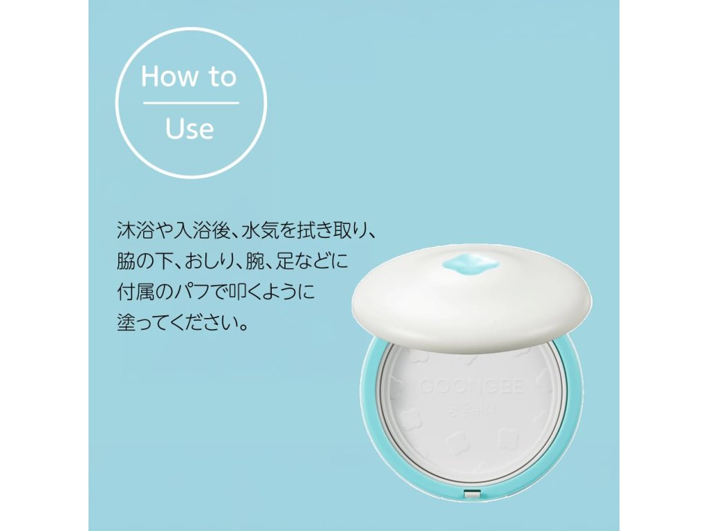 Po kúpaní alebo prebalovaní dôkladne osušte pokožku a mäkkým pufom jemne vklepte prípravok do kožných záhybov v oblasti podpazušia, zadku, rúk a nôh.
