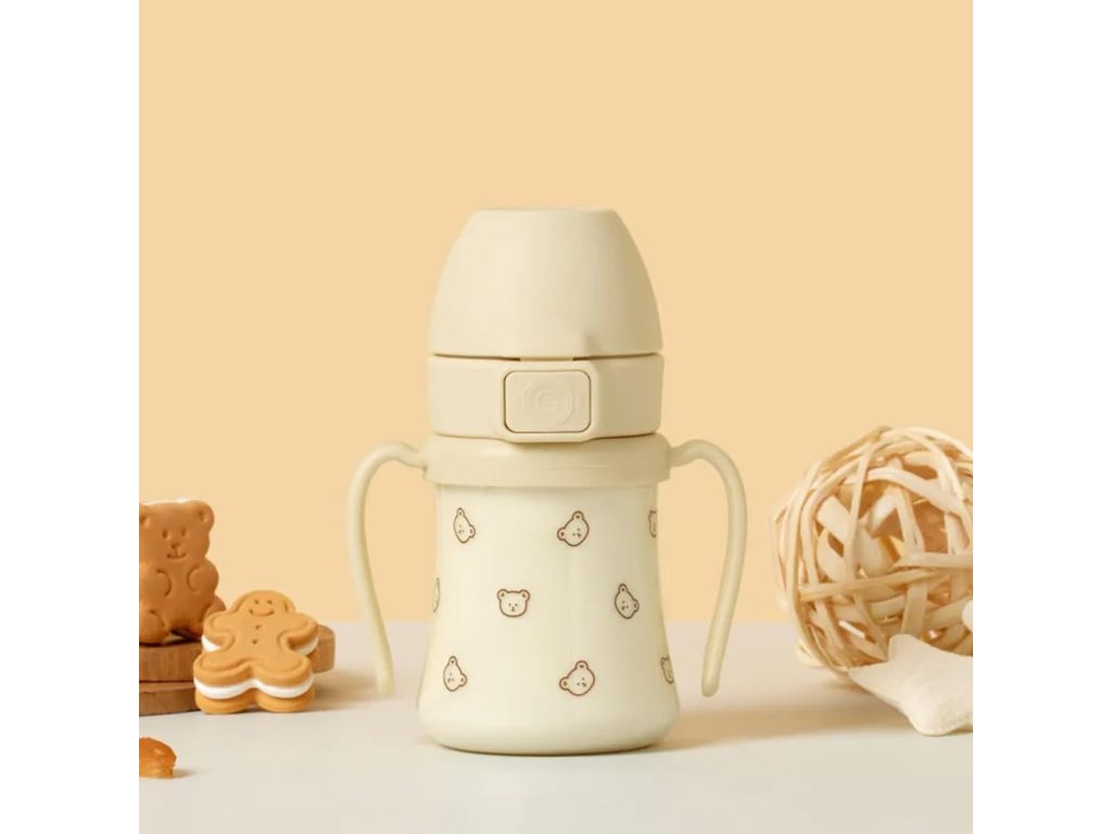 Hrnček je vybavený ergonomickými rukoväťami, ktoré sa otáčajú o 360°, čo umožňuje dieťaťu pohodlne držať fľašu z akéhokoľvek uhla. Rukoväte sú navrhnuté pre malé detské rúčky a podporujú samostatnosť pri pití. Rotačný mechanizmus znižuje zaťaženie zápästí a umožňuje prirodzené držanie.