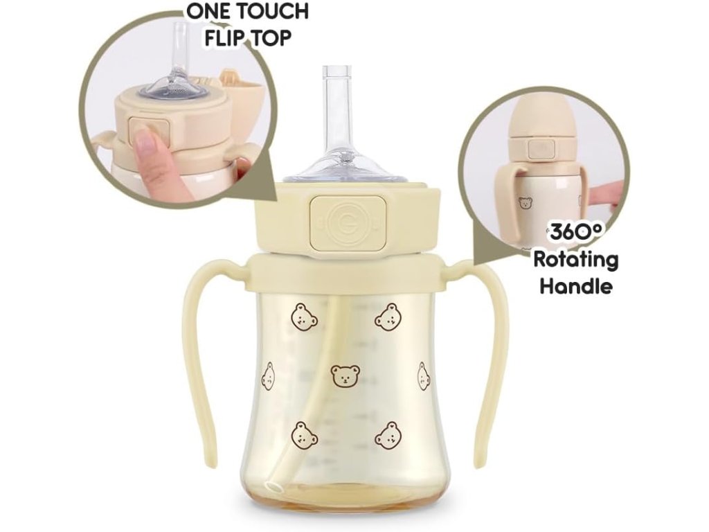 PPSU detský tréningový hrnček GROSMIMI Straw Cup 200 ml je navrhnutý pre deti od 6 mesiacov, ktoré sa učia piť zo slamky. Vyrobená z prémiového PPSU materiálu medical-grade kvality s pokročilým anti-leak systémom a praktickým One Touch flip-top viečkom pre maximálne pohodlie a hygienu.