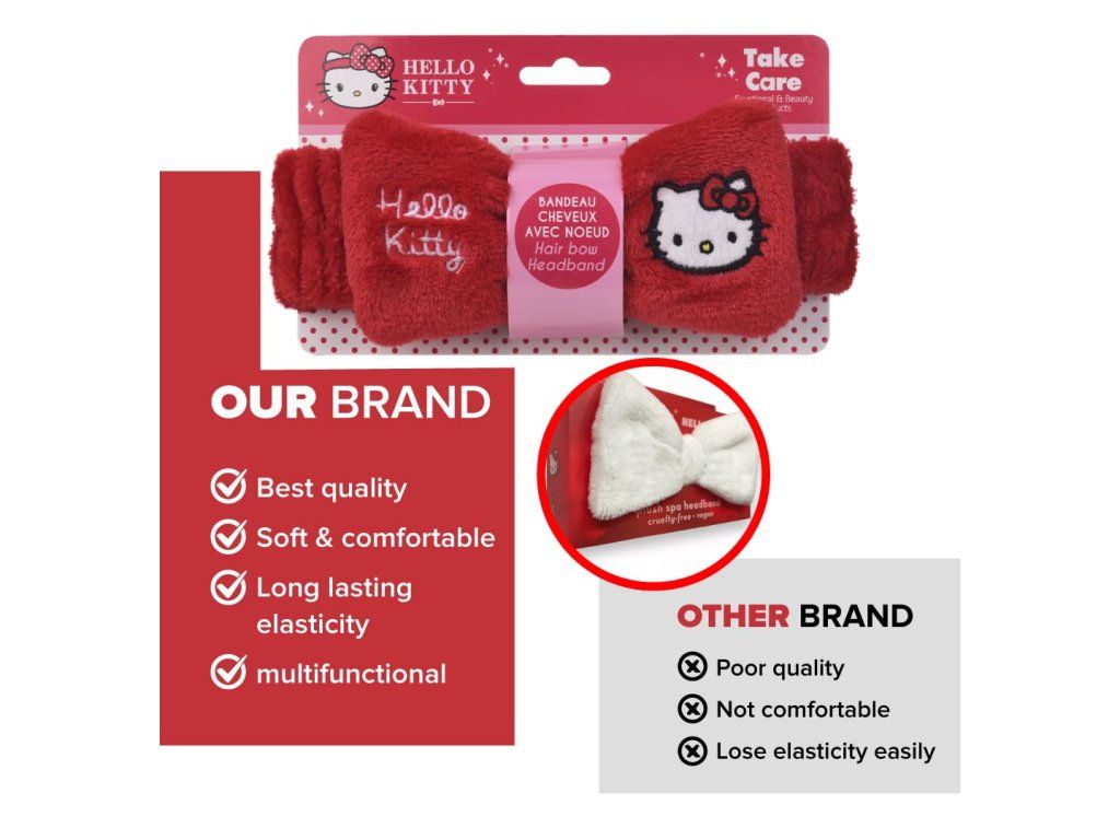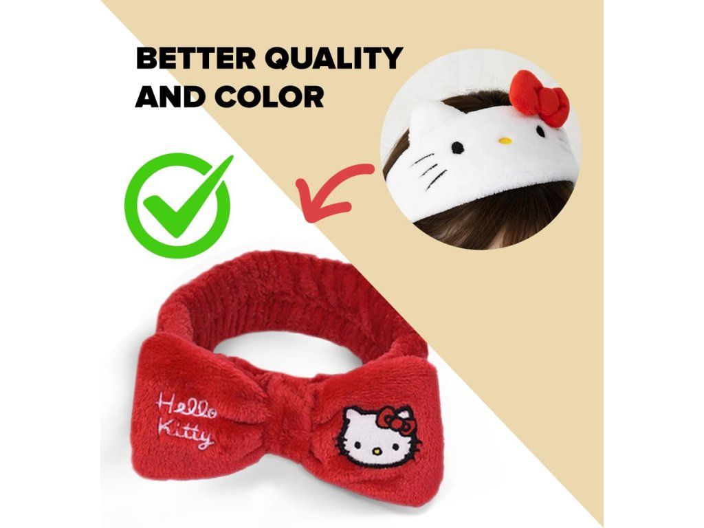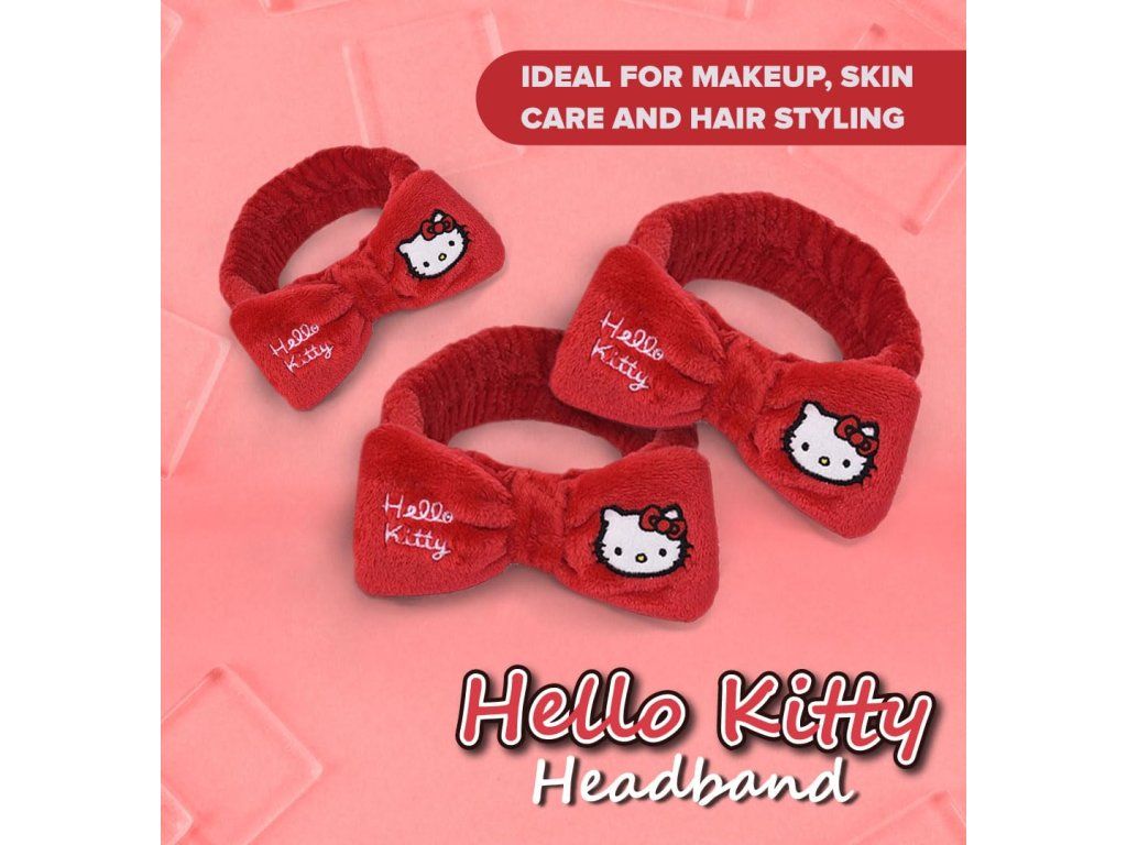 Mäkučká a praktická čelenka s mašľou v štýle Hello Kitty, ideálna na líčenie, čistenie pleti alebo domáci wellness.