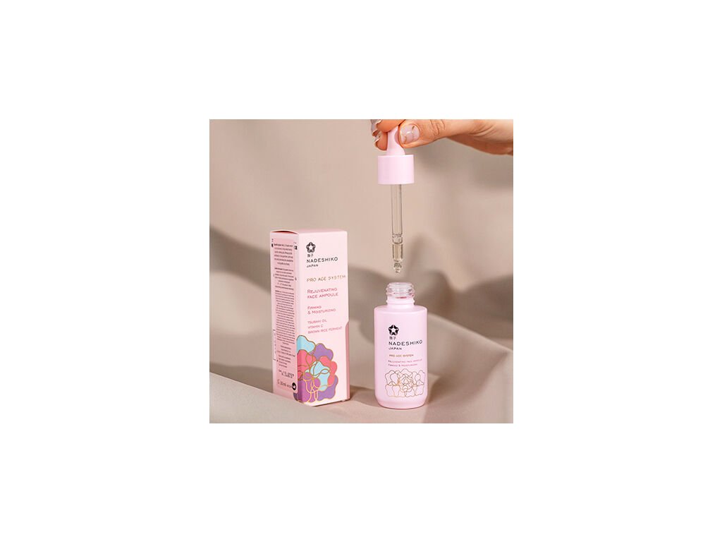 Omladzujúca ampulka Nadeshiko – pleťové sérum s japonským olejom tsubaki, ideálne pre všetky typy pleti, najmä tú, ktorá vyžaduje výživu a revitalizáciu ako prevenciu proti starnutiu. Dlhodobo hydratuje, spevňuje, rozjasňuje a vyrovnáva tón pleti. Vyživuje a regeneruje, znižuje viditeľnosť vrások a robí pokožku pružnejšou.