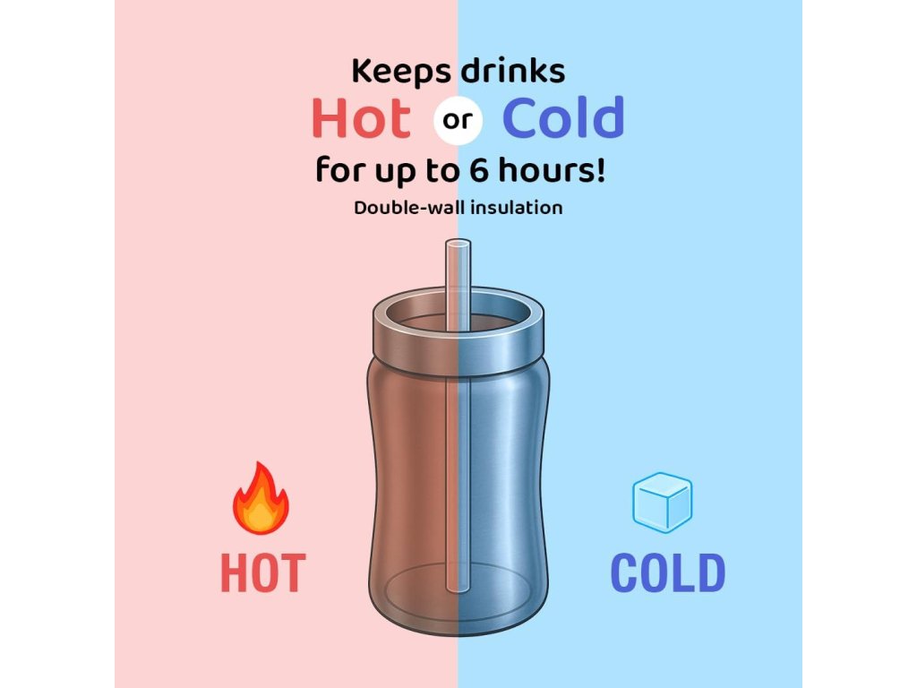 Hrnček je vybavený vákuovou izoláciou medzi vnútornou a vonkajšou vrstvou nerezu, ktorá účinne udržuje teplotu nápojov. Studené nápoje zostanú studené a teplé nápoje teplé až 6 hodín, čo je ideálne pre vonkajšie aktivity, dlhé výlety, prechádzky v parku alebo celý deň v škôlke.