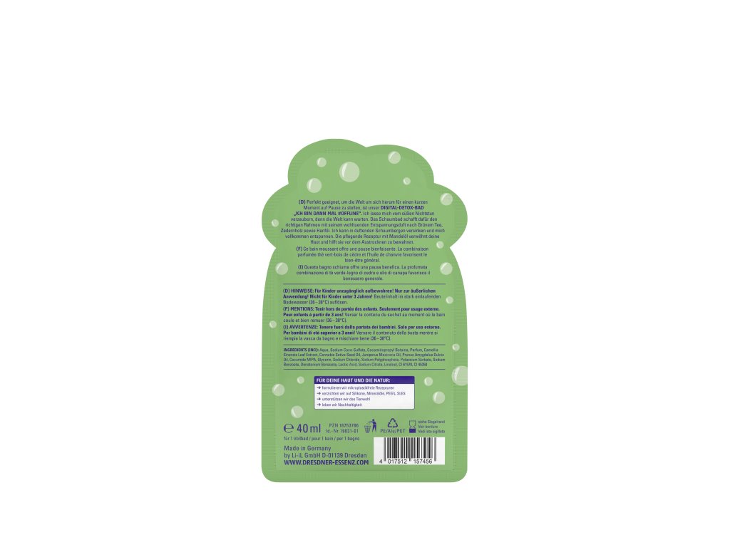 Perfektné riešenie, keď chcete na chvíľu stlačiť pauzu a vypnúť od sveta – naše digitálne detox kúpeľové penu „ICH BIN DANN MAL #OFFLINE“.