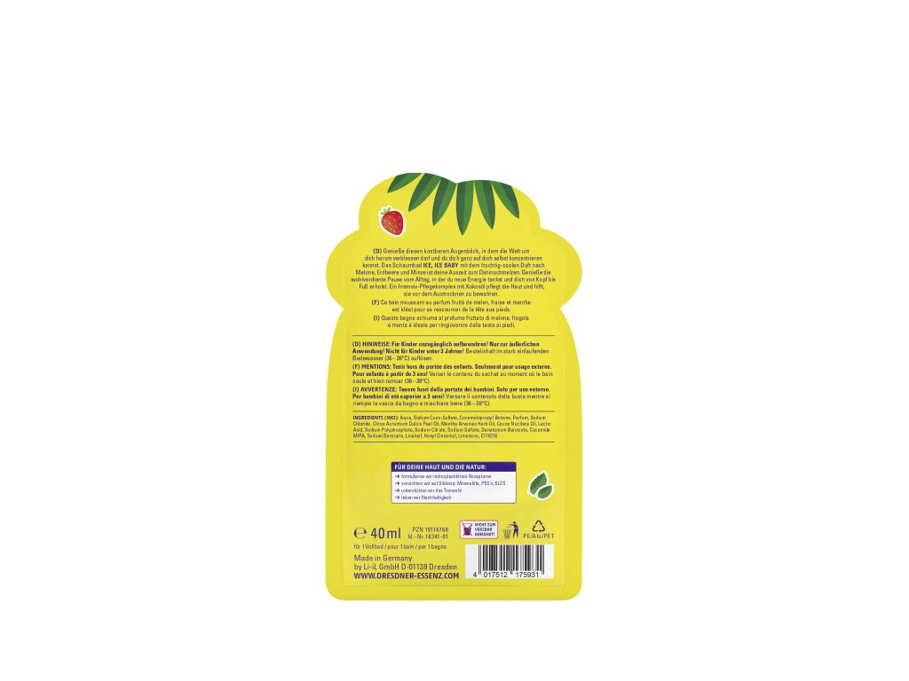 Šumivý kúpeľ *ICE, ICE BABY* s ovocno-sviežou vôňou melónu, jahody a mäty je vaša malá prestávka na roztopenie stresu.