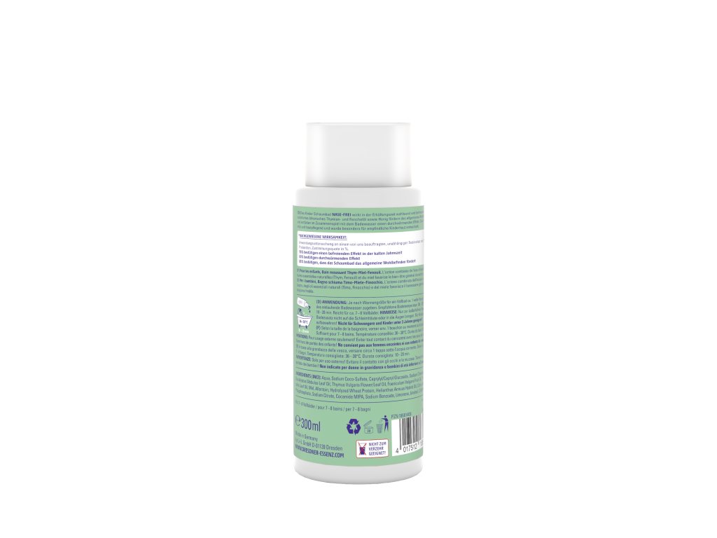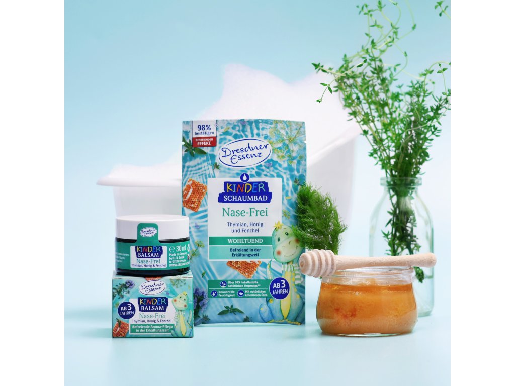 Objavte kúzlo relaxu a uvoľnenia pre vaše dieťa s penou do kúpeľa **Oddychuj voľne**! Vďaka cenným éterickým olejom z tymianu, feniklu a eukalyptu a jemnému dotyku medu sa každá kúpeľ stane upokojujúcim rituálom. Jemná receptúra šetrná k pokožke detí prináša bohatú penu a zábavu vo vani, pričom podporuje voľnejšie dýchanie a navodzuje pocit pohody.