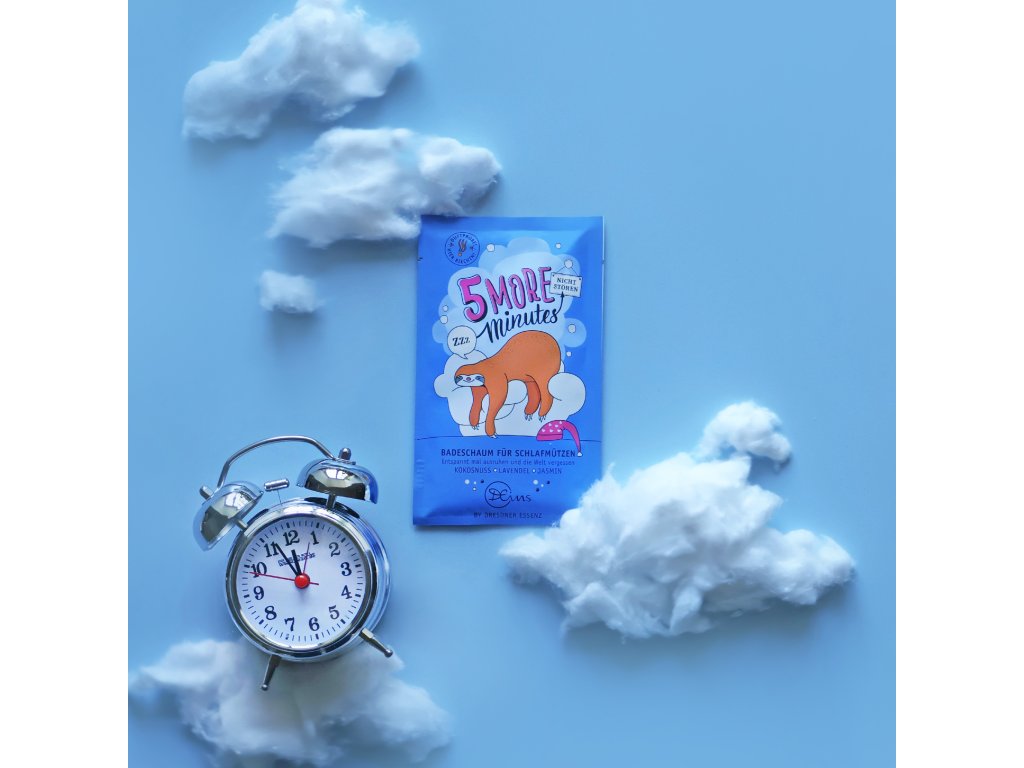 Náš kúpeľový "budík na odloženie" – pena do kúpeľa *JESZCZE 5 MINUT* je určená pre vášnivých spáčov.