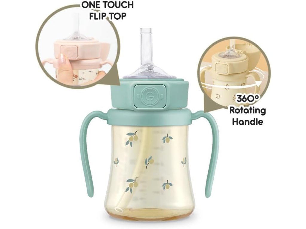 Medical-grade PPSU materiál - bez uvoľňovania mikroplastov. Chemicky stabilný - neuvoľňuje škodlivé látky ani pri teplých nápojoch. Bez BPA, ftalátov a iných nebezpečných chemikálií. Ultra ľahká - len 109g, ideálna pre malé rúčky. Odolná voči nárazom a deformácii. Tepelne odolná až do 200°C. Platinový silikón medical-grade pre slamku - najvyššia kvalita. Odolnejší než bežný silikón - odolný voči pohryzeniu a opotrebeniu. Kontrolovaný prietok - bezpečné pitie zo slamky. One Touch viečko s flip-top uzáverom nad 180°. Patentovaná '+CUT' anti-leak technológia. Vzduchový ventil pre plynulé pitie. Nepretekajúci dizajn - ani pri trasení alebo prevrátení. 360° otočné ergonomické rukoväte. Stabilné široké dno - neprevráti sa ľahko. Objem 200 ml (6 oz) - ideálny pre deti od 6 mesiacov. Kompatibilný s náhradnými slamkami Stage 1 a Stage 2. Jednoduché čistenie - všetky časti sa dajú rozložiť. Vhodné do umývačky riadu aj na sterilizáciu. Neprenáša farby ani pachy. Priehľadné telo - vidíte množstvo tekutiny. Kompatibilné s náhradnými dielmi GROSMIMI. Vyrobené v Kórei. Dostupné v siedmich roztomilých dizajnoch vrátane Knotted kolaborácií.
