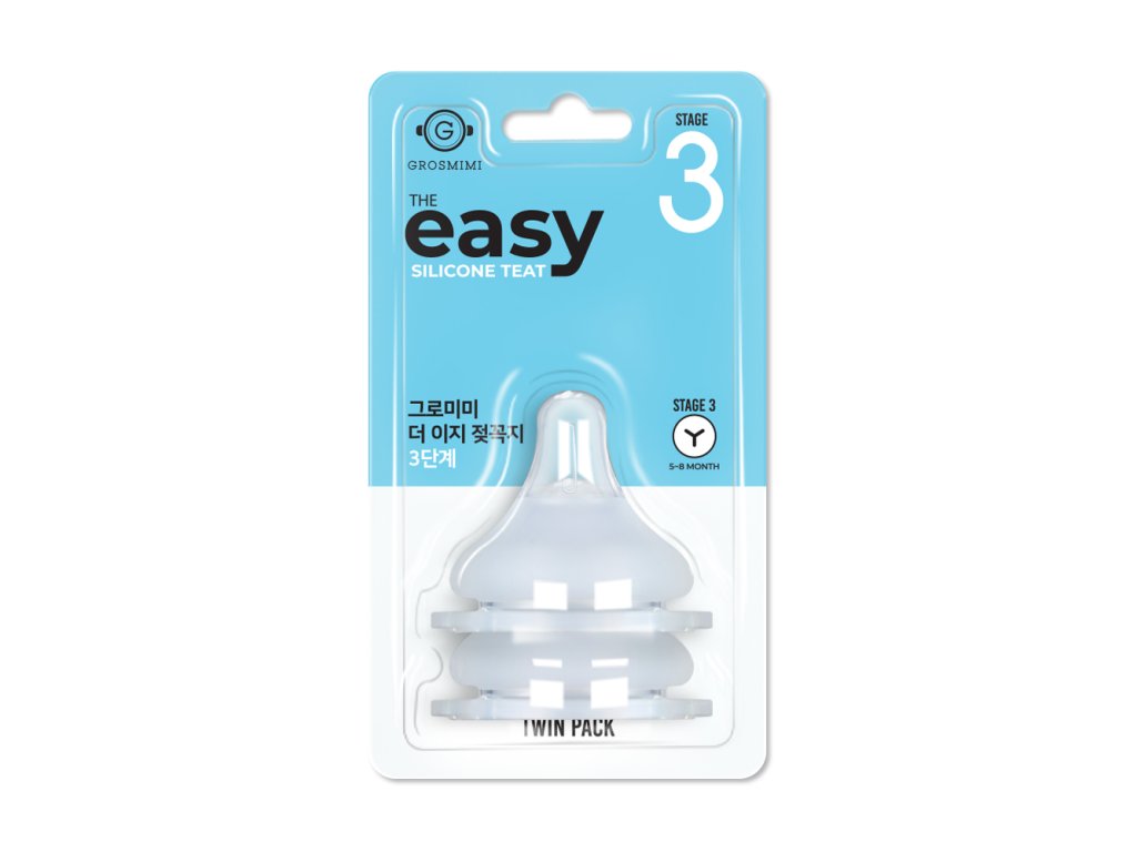 The Easy Nipple sú dostupné v 5 stupňoch podľa veku a potrieb dieťaťa. Stage 0 - 0-1 mesiac (Newborn) - SINGLE PACK: Extra mäkký cumlík špeciálne pre novorodencov, minimálny prietok pre najmenšie bábätká, balenie obsahuje 1 kus (ostatné Stage 1-4 obsahujú 2 kusy), ideálny pre prvé dni života a kombinované dojčenie. Stage 1 - 1-3 mesiace (SOFT) - TWIN PACK: Mäkký cumlík s pomalým prietokom, ideálny pre malé bábätká a kombinované dojčenie, zabraňuje prejedeniu a kolikám, súčasť balenia GROSMIMI fľaše 200ml (6oz), balenie obsahuje 2 kusy. Stage 2 - 3-5 mesiacov (MEDIUM) - TWIN PACK: Stredný prietok pre rastúce bábätká, vhodný pre väčšie porcie mlieka, súčasť balenia GROSMIMI fľaše 300ml (10oz), balenie obsahuje 2 kusy. Stage 3 - 5-8 mesiacov (Y-CUT) - TWIN PACK: Y-rez pre hrubšie kašovité jedlá, ideálny pri prechode na príkrmy, väčší prietok bez náhleho vyliatia, balenie obsahuje 2 kusy. Stage 4 - 8+ mesiacov (HARD / CROSS CUT) - TWIN PACK: Krížový rez (+CUT) pre najväčší prietok, odolnejší cumlík pre deti s dentíciou, vhodný pre staršie deti, balenie obsahuje 2 kusy.
