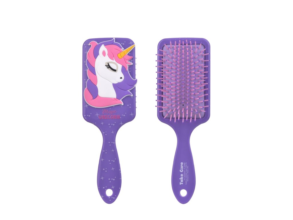 Rozčesávanie vlasov sa môže stať kúzelným rituálom! Fialová kefa Magic Unicorn s roztomilým jednorožcom skrotí aj tie najneposlušnejšie vlásky.